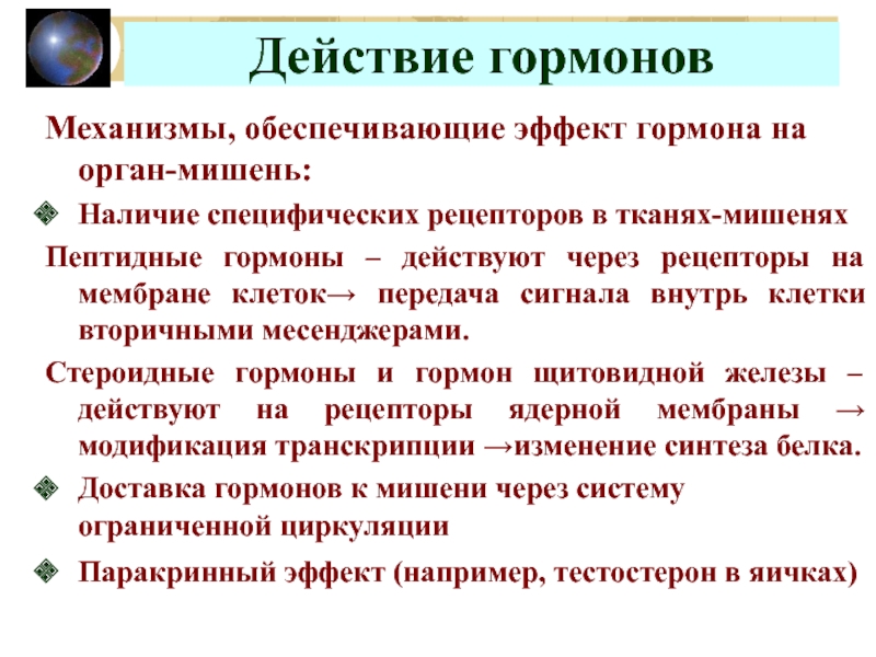 Механизмы, обеспечивающие эффект гормона на орган-мишень: