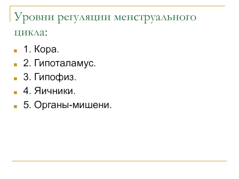 гипоталамо-гипофизарных центров до яичников и органов мишеней.