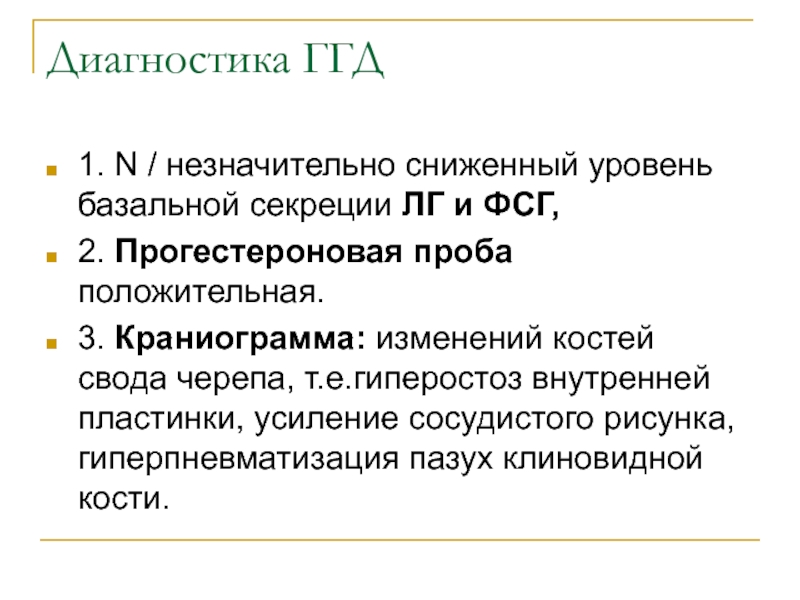 1. N / незначительно сниженный уровень базальной секреции ЛГ