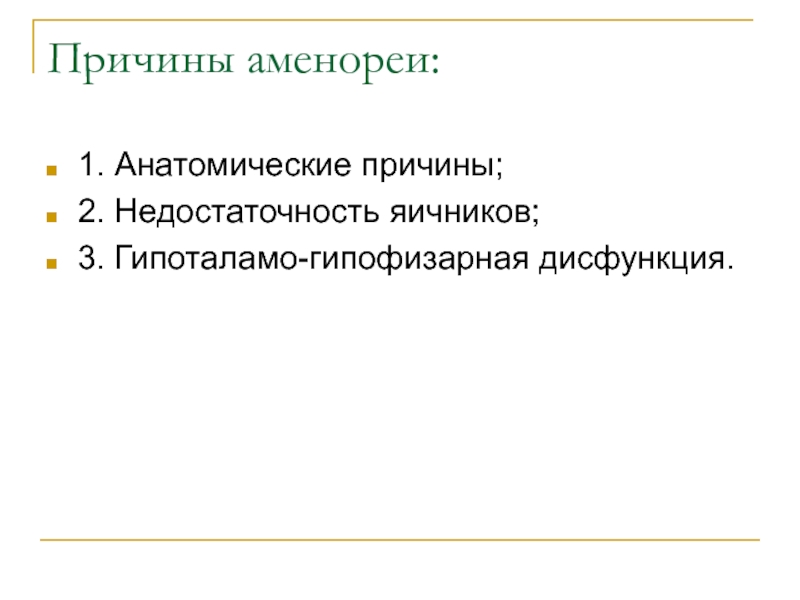 гипоталамус-гипофиз-яичники в результате повреждений различных её уровней от ЦНС и