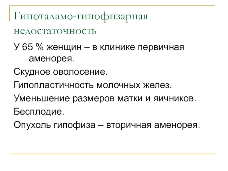 Слайд 14Гипоталамо-гипофизарная недостаточность
