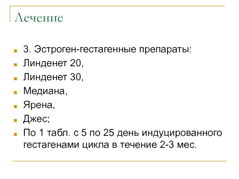 1. Эстроген-гестагенных препараты по 1 табл. в день, с 5-26