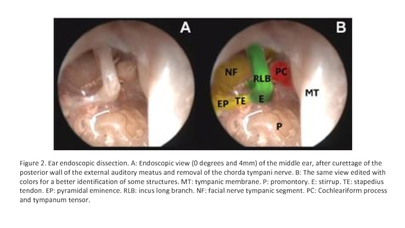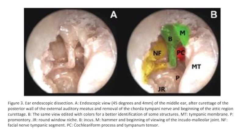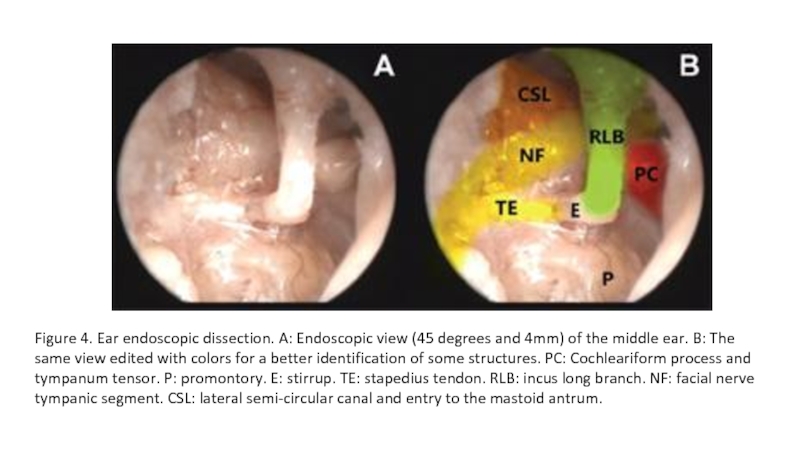 Слайд 8Figure 4. Ear endoscopic dissection. A: Endoscopic view (45 degrees