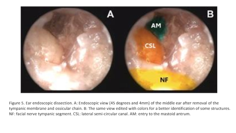 Слайд 10Figure 6. Ear endoscopic dissection. A: Endoscopic view (45 degrees