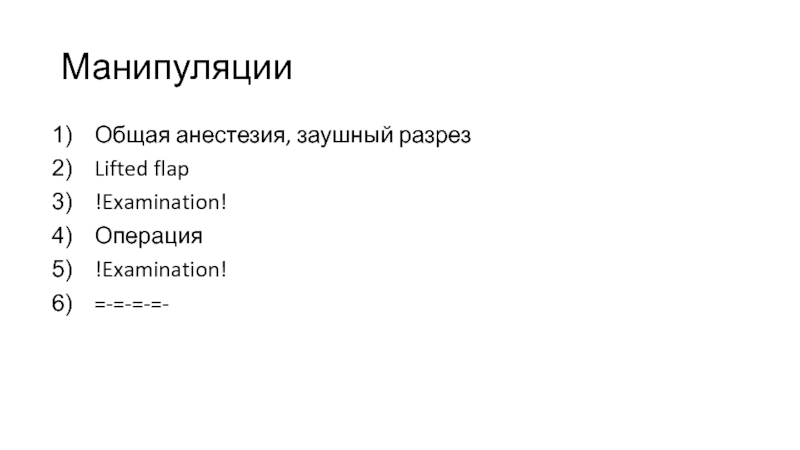 Манипуляции Общая анестезия, заушный разрезLifted flap !Examination! Операция!Examination! =-=-=-=-