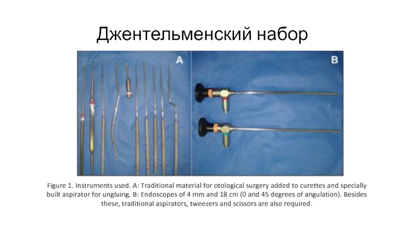 Джентельменский набор Figure 1. Instruments used. A: Traditional material for otological surgery added to curettes and specially