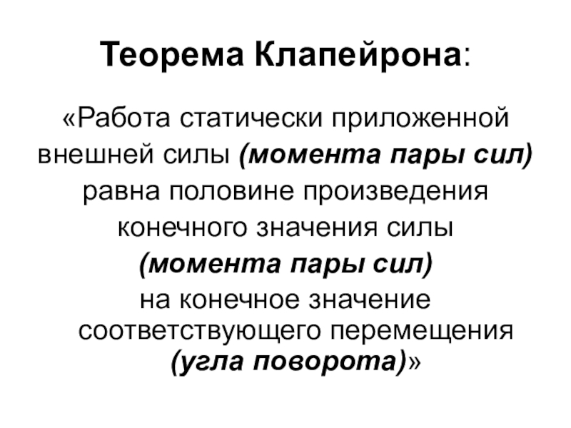 работы внешних сил, приложенных к линейно-деформируемой упругой системе, и энергии деформации системы