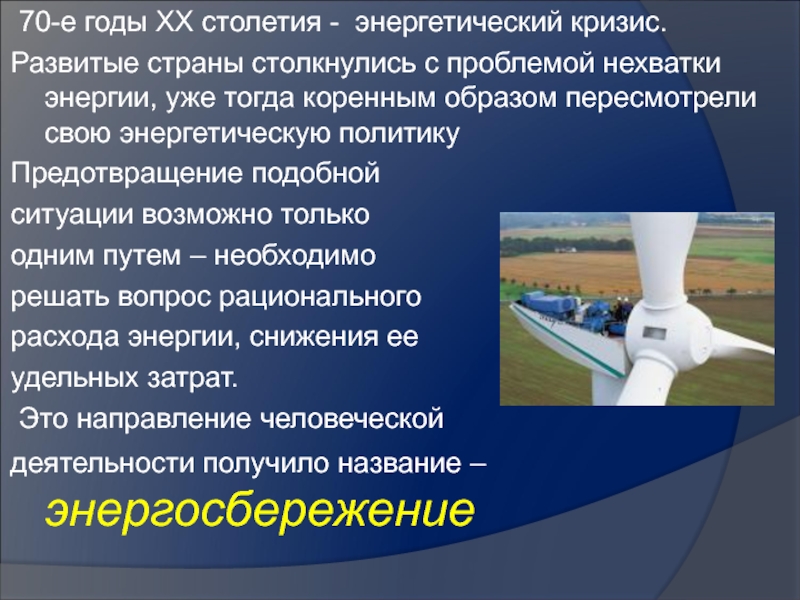 Слайд 2 70-е годы ХХ столетия - энергетический кризис.