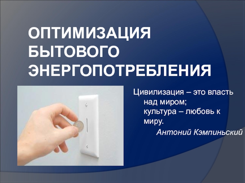 Слайд 15ОПТИМИЗАЦИЯ БЫТОВОГО ЭНЕРГОПОТРЕБЛЕНИЯ
