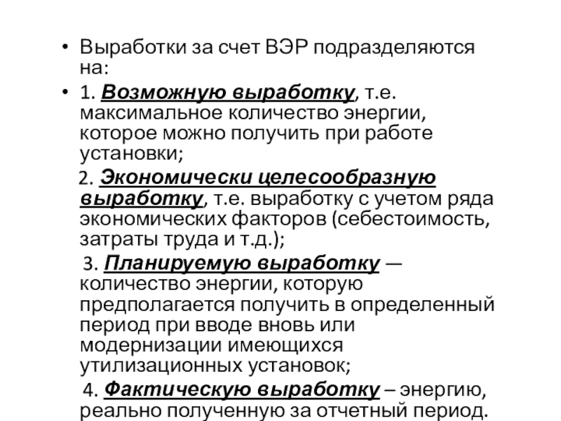 Слайд 11Выработки за счет ВЭР подразделяются на: