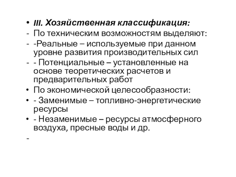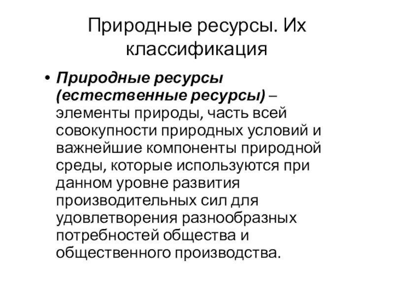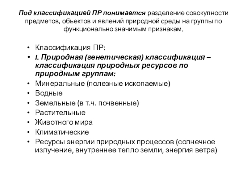 Природная (генетическая) классификация – классификация природных ресурсов по природным группам: