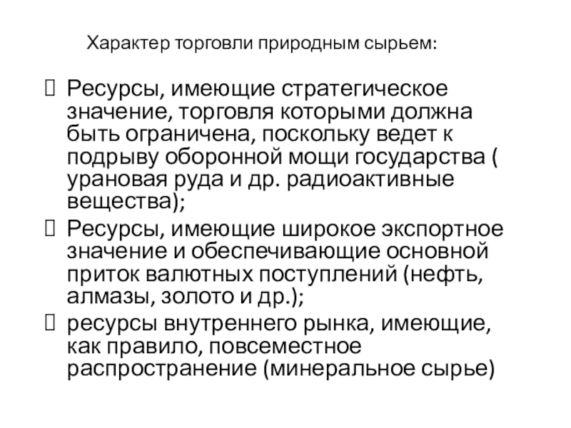 Ресурсы, имеющие стратегическое значение, торговля которыми должна