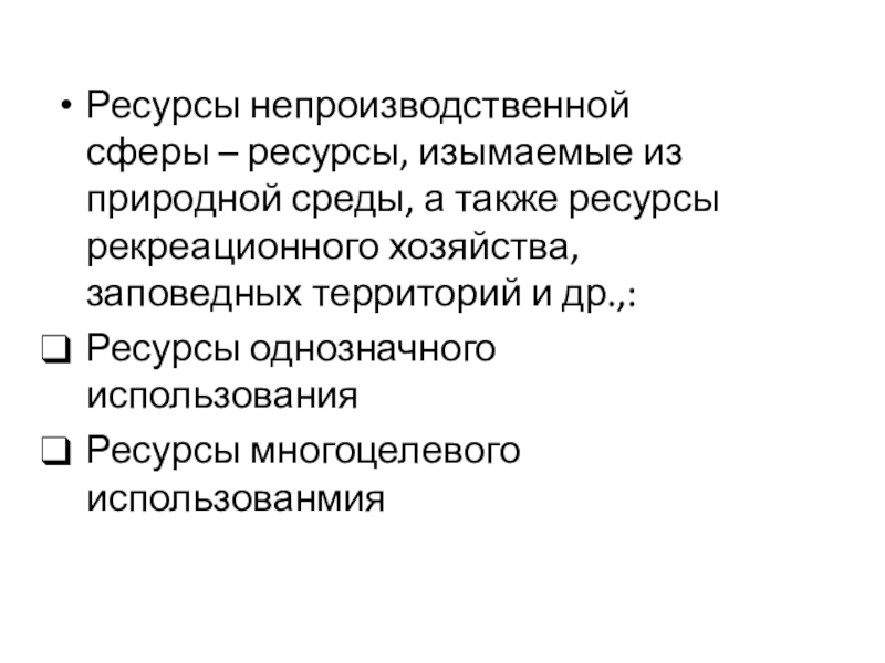 Слайд 24Ресурсы непроизводственной сферы – ресурсы, изымаемые из природной среды, а