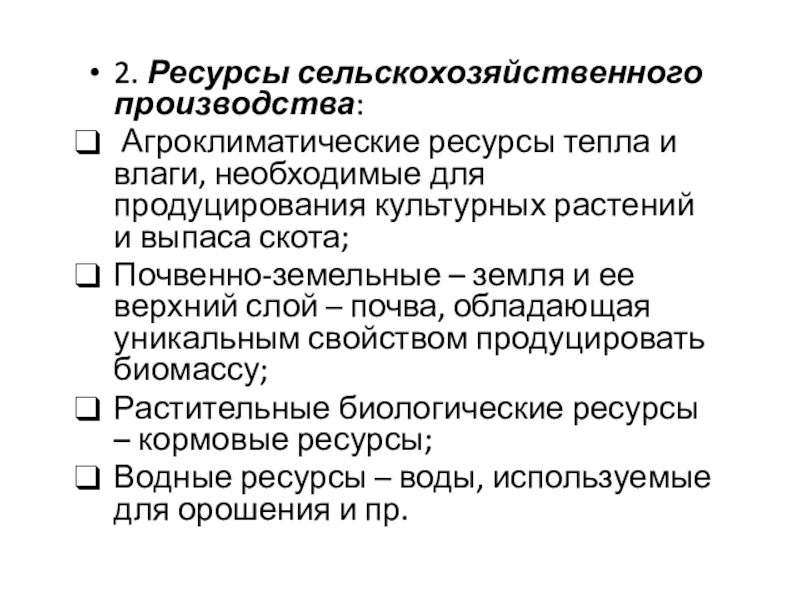 Слайд 232. Ресурсы сельскохозяйственного производства: