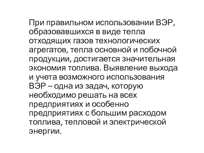 Слайд 14 При правильном использовании ВЭР, образовавшихся в виде тепла