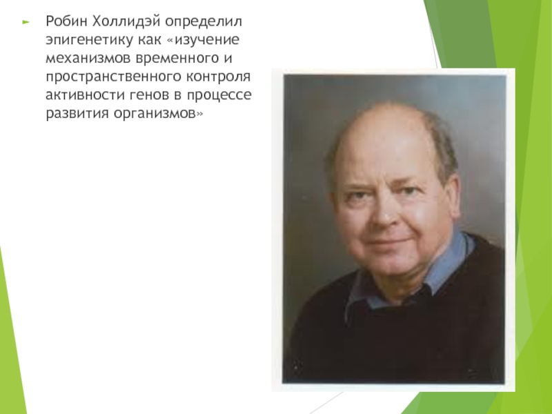 Слайд 6Робин Холлидэй определил эпигенетику как «изучение механизмов временного и пространственного