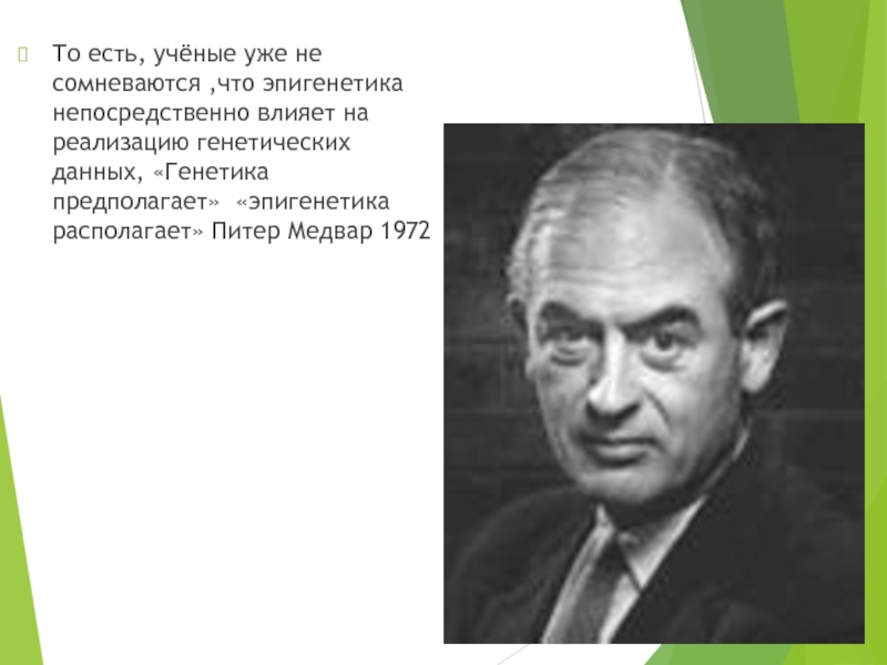 на реализацию генетических данных, «Генетика предполагает» «эпигенетика располагает» Питер Медвар