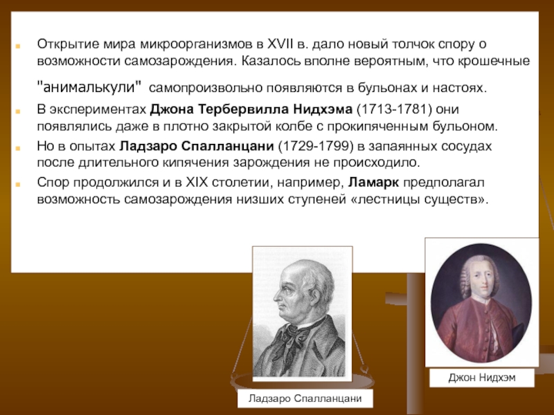 Открытие мира микроорганизмов в XVII в. дало новый толчок спору