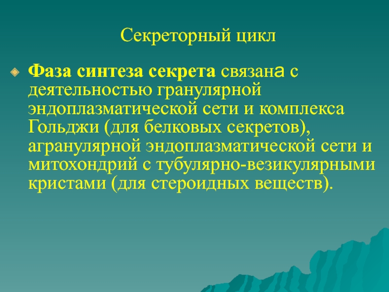 Фаза синтеза секрета связана с деятельностью гранулярной эндоплазматической сети