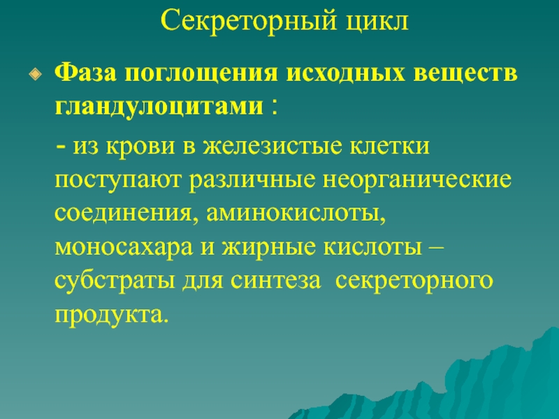 крови в железистые клетки поступают различные неорганические соединения, аминокислоты, моносахара