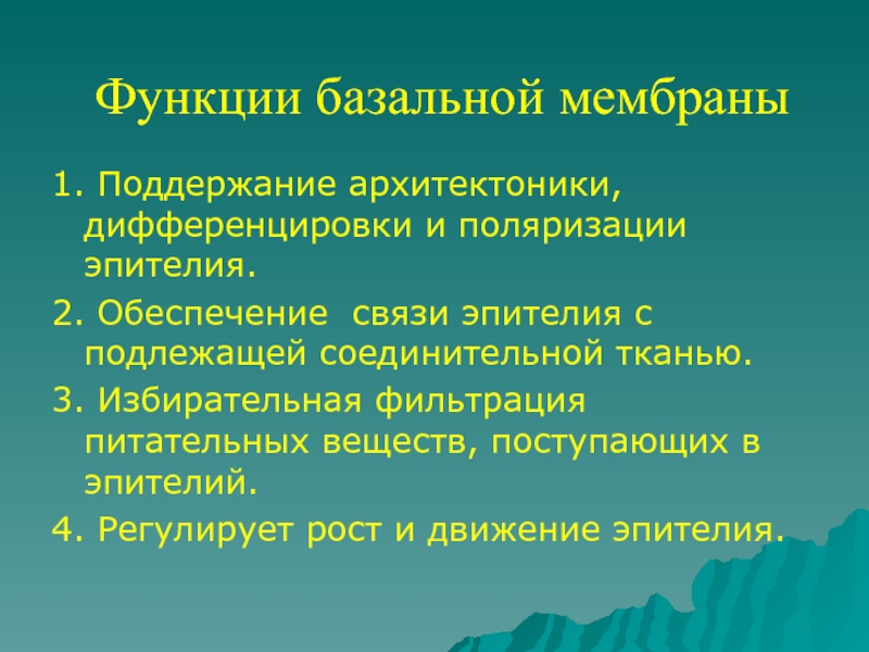 1. Поддержание архитектоники, дифференцировки и поляризации эпителия.