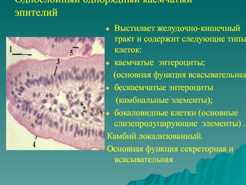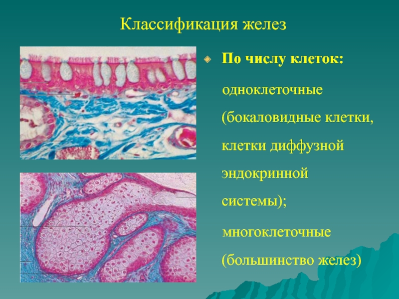 одноклеточные (бокаловидные клетки, клетки диффузной