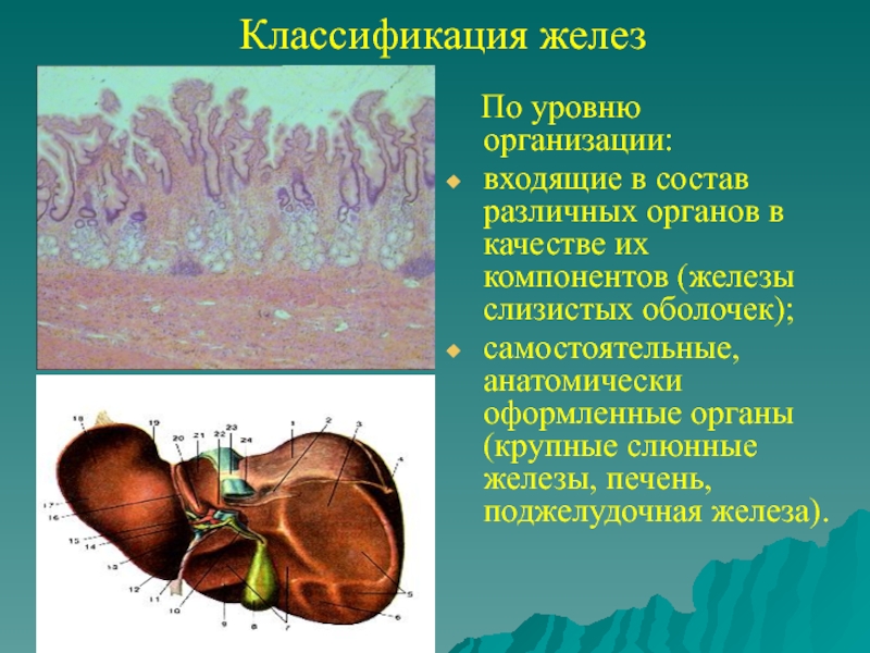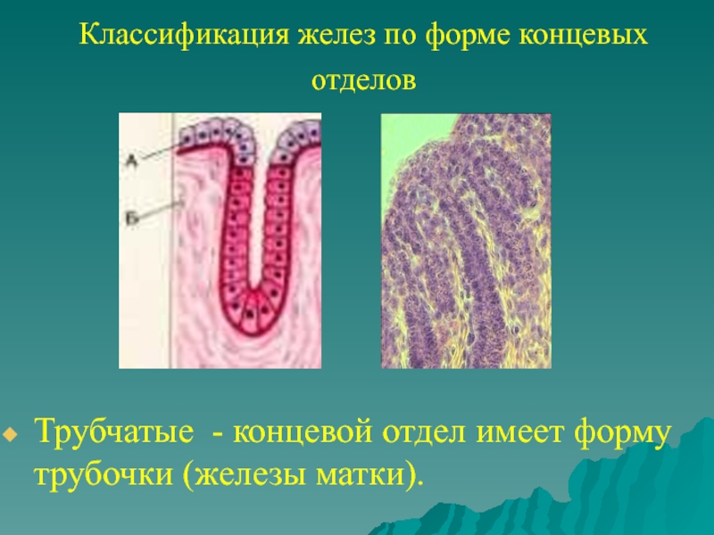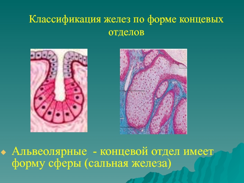 Слайд 53Классификация желез по ветвлению концевых отделов