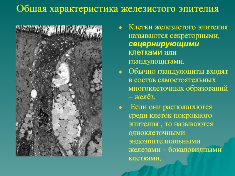Если они располагаются среди клеток покровного эпителия , то называются одноклеточными эндоэпителиальными железами – бокаловидными клетками.