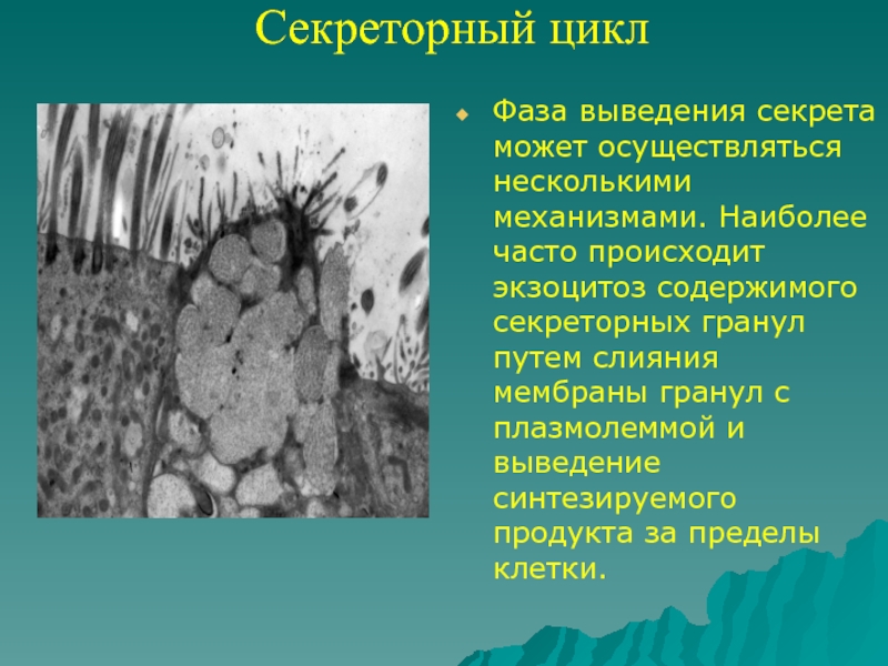 Фаза выведения секрета может осуществляться несколькими механизмами. Наиболее часто