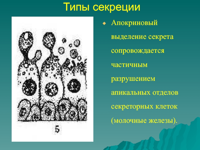 Апокриновый выделение секрета сопровождается частичным разрушением