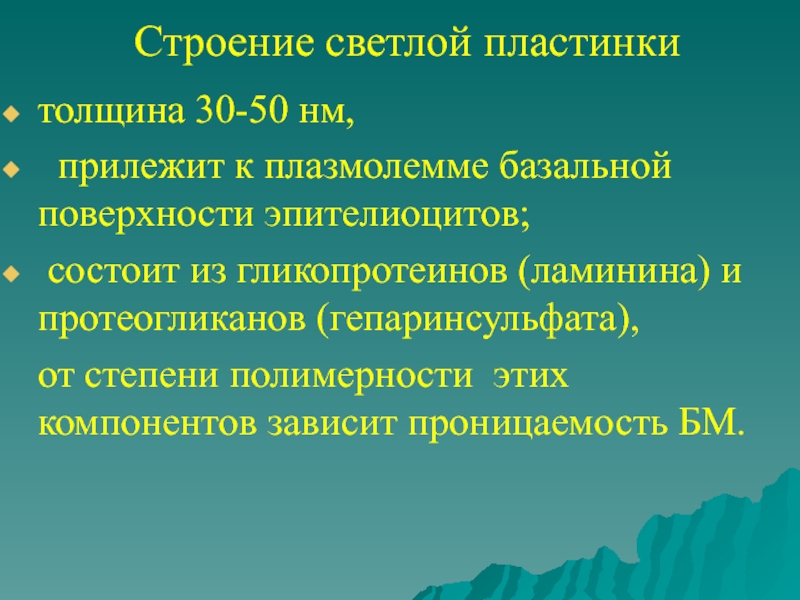 БМ- сложные, динамичные углеводно-белковые комплексы. Они могут быть сетчатыми и непрерывными, стабильныли и лабильными.