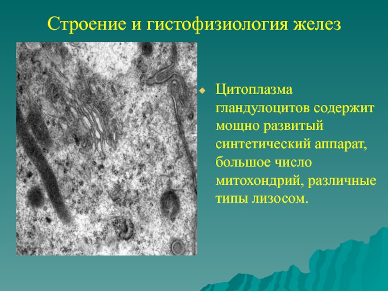 Цитоплазма гландулоцитов содержит мощно развитый синтетический аппарат,
