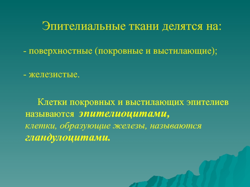 Эпителии – пограничные ткани, располагающиеся на границе с внешней средой, а также образующие секреторные отделы и выводные протоки желез.
