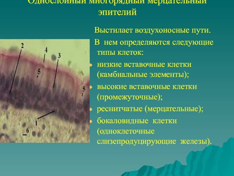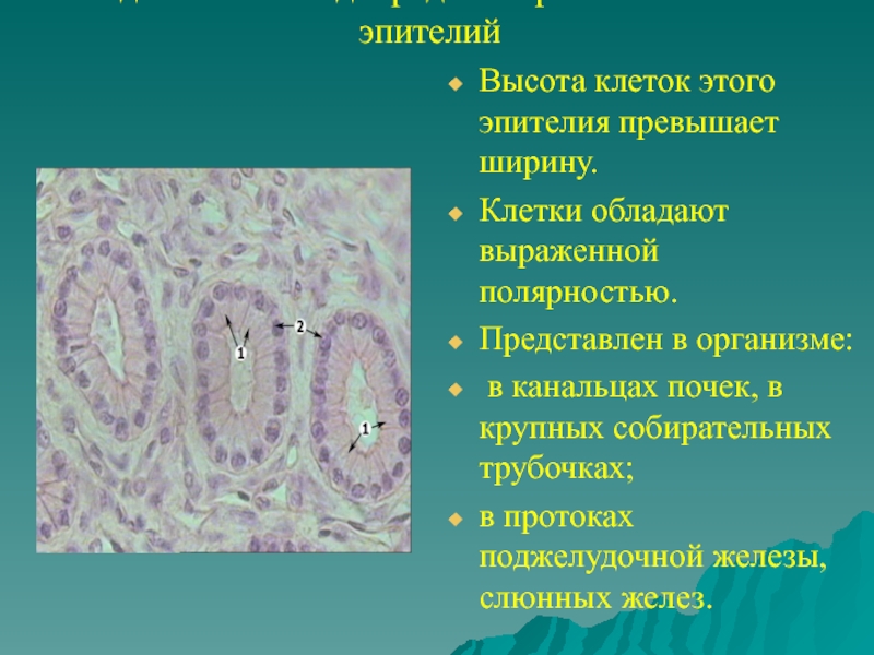 Призматический эпителий может быть многорядным (различной формы и высоты клетки их ядра лежат на разных уровнях от базальной мембраны).