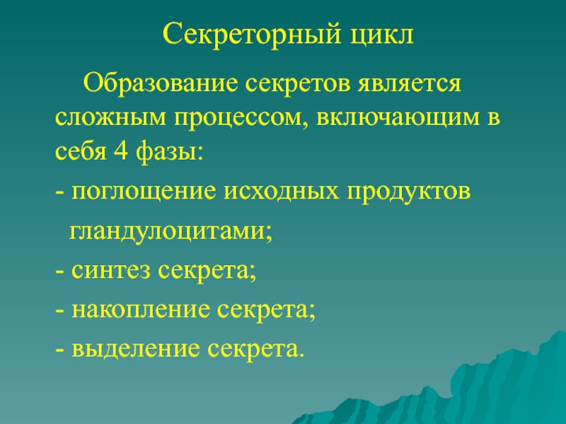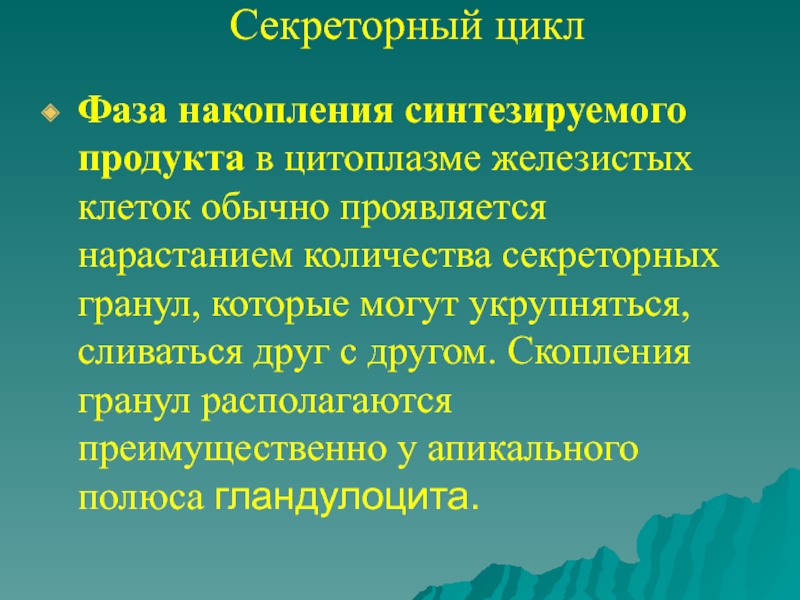 Фаза накопления синтезируемого продукта в цитоплазме железистых клеток обычно