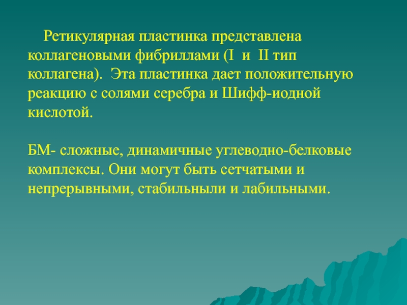 Слайд 11 Ретикулярная пластинка представлена коллагеновыми фибриллами (I и II