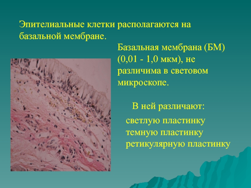 Слайд 8Эпителиальные клетки располагаются на базальной мембране.