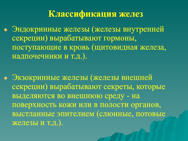 Эндокринные железы (железы внутренней секреции) вырабатывают гормоны, поступающие в