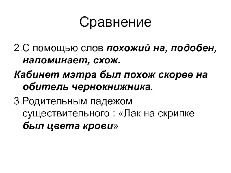 2.С помощью слов похожий на, подобен, напоминает, схож.