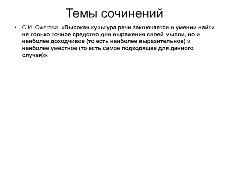 С.И. Ожегова: «Высокая культура речи заключается в умении найти не