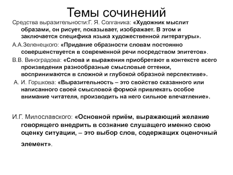 Средства выразительности:Г. Я. Солганика: «Художник мыслит образами, он рисует, показывает,