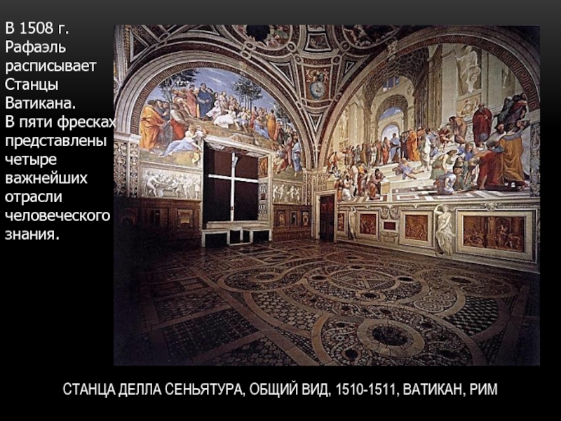 церкви Санта-Мария-дель-Пополо, Апартаментах Борджиа и Сиенском соборе. вместе с Рафаэлем — у Перуджино, которому помогал при создании фресок Сикстинской капеллы Ватикана (1481—1482)