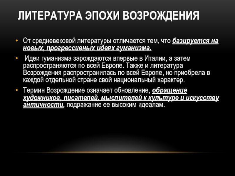 В творчестве таких авторов, как Петрарка, Рабле, Шекспир,