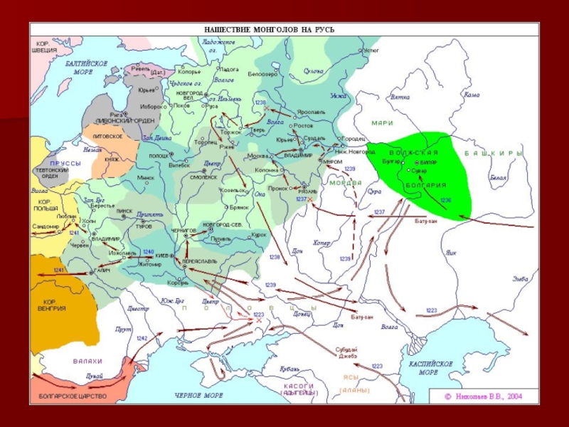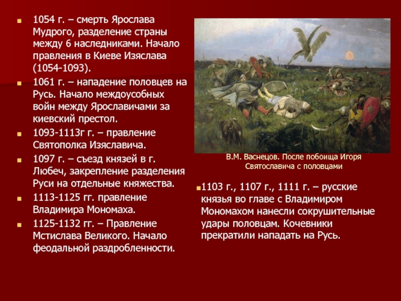 Упадок Киевской земли от набегов, перемещения торговых путей в обход Киева.