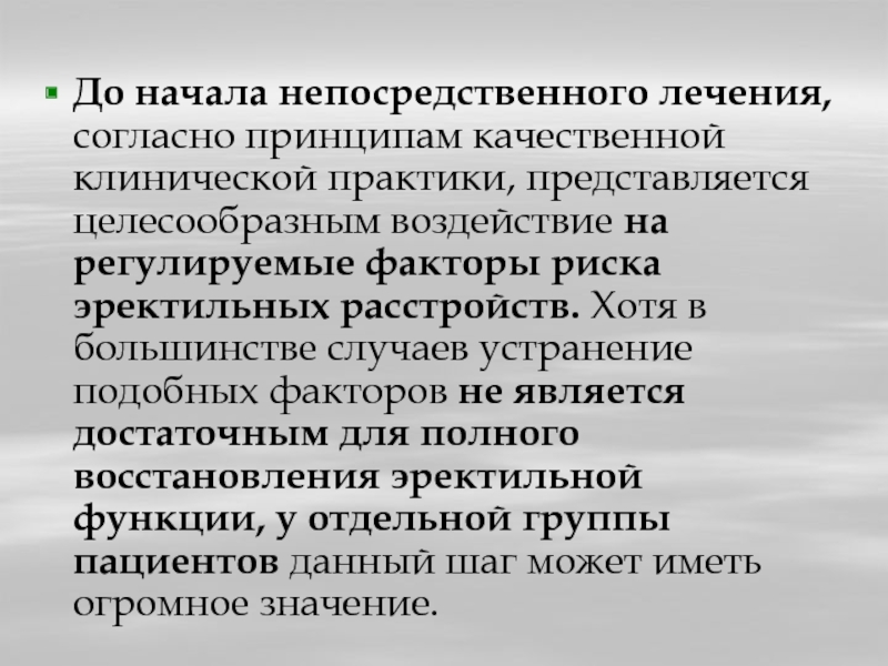 целесообразным воздействие на регулируемые факторы риска эректильных расстройств. Хотя в