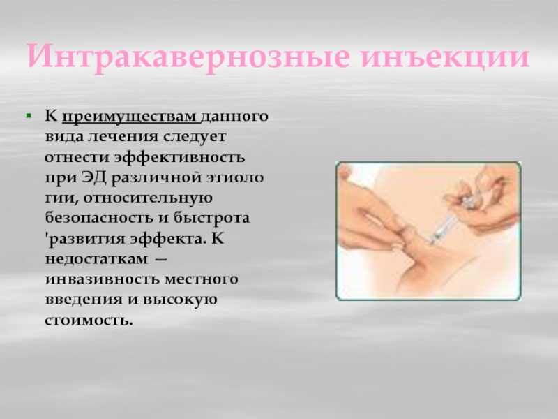 Интракавернозные инъекции препаратов являются широко используемым методом медикаментозного лечения
