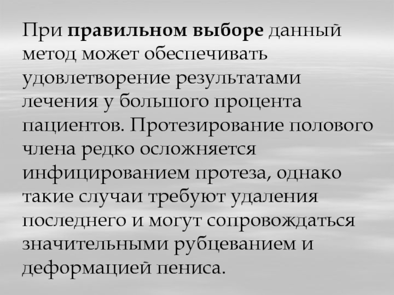 у большого процента пациентов. Протезирование полового члена редко осложняется инфицированием