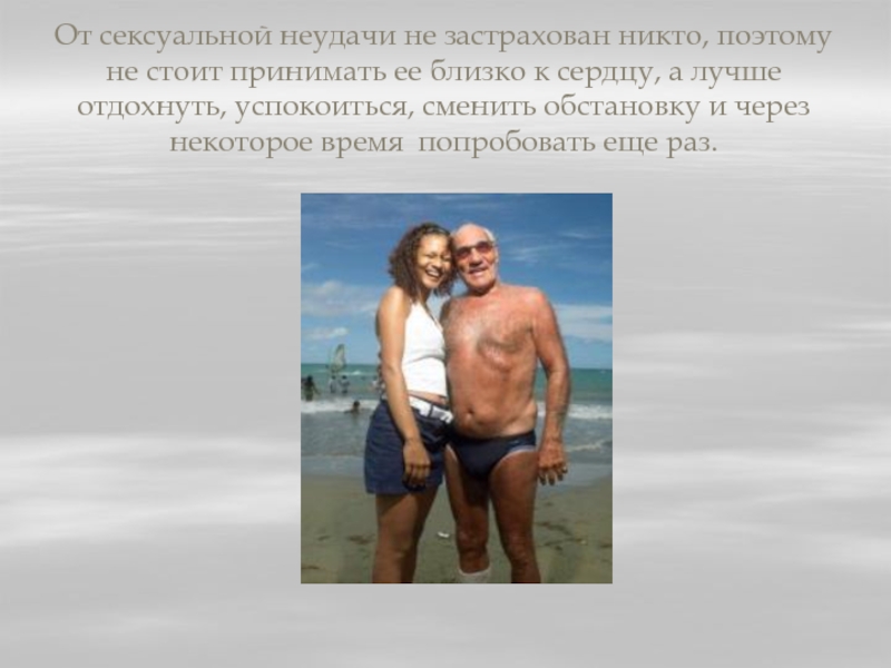 Слайд 55От сексуальной неудачи не застрахован никто, поэтому не стоит принимать