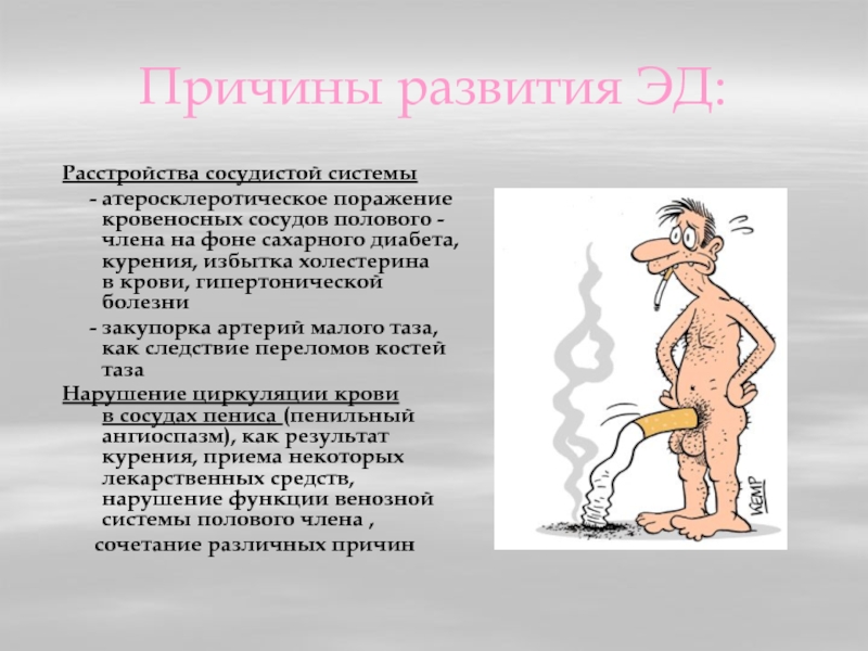 этиологии эректильной дисфункции, нежели психогенные факторы. Сосудистые причины представляют большинство