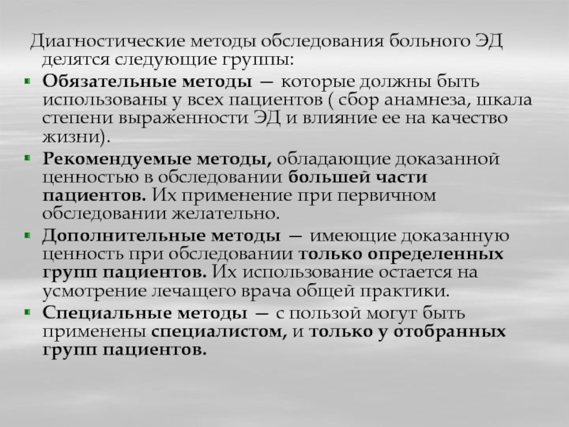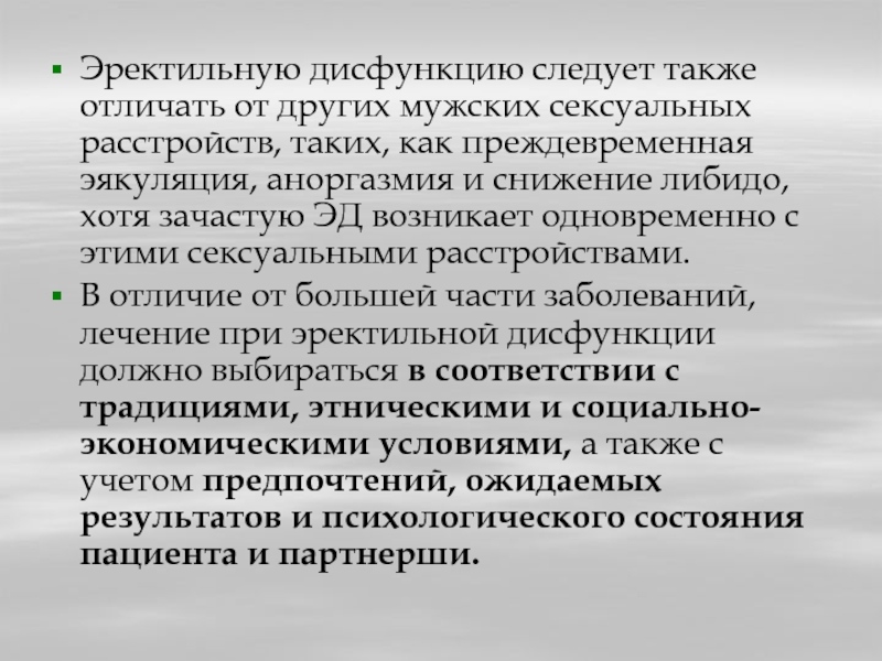 Слайд 16Эректильную дисфункцию следует также отличать от других мужских сексуальных расстройств,